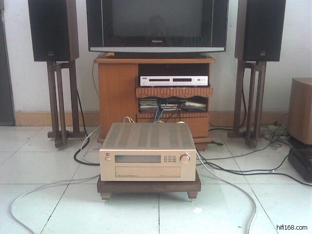 我目前系统很垃圾:先锋6600DVD+柴尔ZD-120功放+惠威杜希D3.2音箱,正在寻找合适的音源和线材。房间容积393cm(长)*334cm(宽)*314cm(高),音箱摆短边,间距183cm(中对中),后墙有150cm*150cm的铝合金玻璃窗及大型落地窗帘,室内摆有一套布艺沙发,未做特别声学处理,因沙发占位的关系音箱距后墙仅108cm(这已经是极限距离了,呵呵)。需要改进的太多,还请楼主不吝赐教。