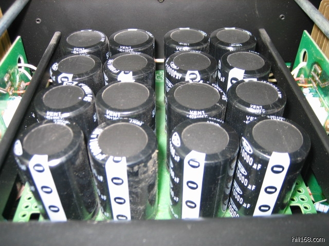 本机采用了强大的电源设计,这既是优秀性能的需要,也是甲类工作状态的需要。前级采用甲类并联电源,用8万微法电容器滤波,作为提高清晰度和音质的甜美度的保证。后级则用16万微法电容器滤波,以保证强大的功率储备和提高低音的雄厚度。