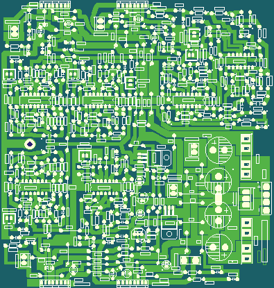 再说YAMAMODO带来的玩艺,人们在市场上可以从美国BOSE音响专卖店看到所谓的“休闲”系列产品,那就是山本先生的发明专利技术。其特点是使用只有一只拳头大的音箱作3D系统小卫星音箱,给外行产生没有意想到的奇特效果。这种音质低劣的破玩艺,我在20世纪80年代就研究过。这位山本先生不仅是把声音很糟糕的破玩艺拿来蒙哄人,他采用仿真软件设计的电路按理已经给出了最佳参数,但却会在没有谁去碰到的情况下产生自激,使本应该安静无声的喇叭产生啸叫。反复折腾了3个月,修改了几次电路及元件参数,才勉强解决电路自激问题,把样机拿出去参展。在事实面前,董事长只得终止与山本先生的合作。后来实际推销的是我给柏力公司设计的具有同样声效的产品。98年,珠海柏力公司通过东莞台商喻得公司在国内销售了第一批货,接着又被深圳TCL公司从喻得公司接手过去,TCL公司又增加了话筒输入变成为他们的家庭影院产品。不久,国内大批仿造品出现在电脑音响市场上,这种破玩艺东西也就显出了原形。图③便是该玩艺的第一个版本印刷电路图,我同时还设计有使用μPC1892音效处理器件制作的另一个版本的电路供客户选择,图④是其印刷电路。