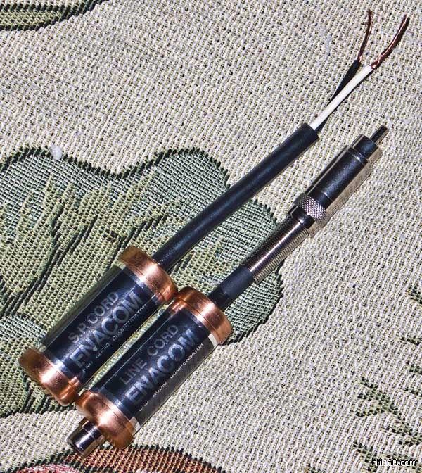 非常感谢营长的支持,寄来木内和夫的SPEAKER ENACOM和LINE CABLE ENACOM给偶试听,其中SPEAKER ENACOM是并联在箱子的接线拄上,LINE CABLE ENACOM是接在信号线和功放的信号输入端之间。目前已经听得差不多了,ENACOM系列产品共三样,还有一种是用在电源上的AC ENACOM,这个系列的主要作用是减少外界对器材的干扰和杂波,个人估计和国内一些烧友在电源上并联高档电容是类似的方式。