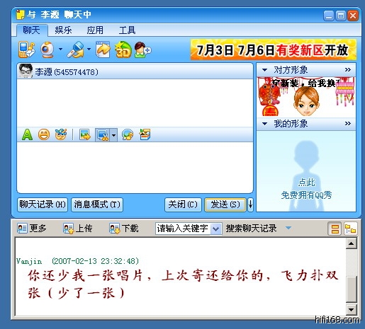 说起电话——我自己就特别不愿意打或接听。我蛮忙的,工作也是以电话为主。所以也“以己度人”地不愿意用电话来“骚扰”你。不就是张碟吗,QQ上留个言不就得了?!这张唱片就先“欠”这吧,等我来广州时或以后再买碟时一并补吧——其实怕啊,每次买碟,完好无损的几乎没有啊!