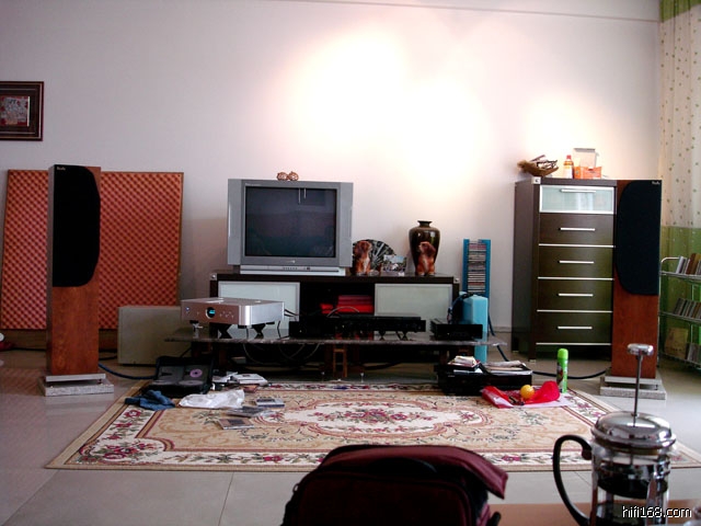 星期六,北方的天空可能是暴雨连绵,但南方却晴空万里,外面骄阳似火,尽管挂着黄色热带风暴标致,那个天真的高烧到38.5度,在这浮燥和烦热的商业社会里,似乎大家炒股的都炒股去了,挣钱的挣钱去了,好像烧友都没心思关心烧事了,烧普洱茶的没心机烧水喝茶聊天.天啊,烧吧,天烧我们照样烧,由于中山MARK哥来电话告诉新系统出声了,B&W801功放器材重组,阿新哥新买B&W801D,还有阿麦先生一套灵狮配贵族,这不,听到801对801D,D那可是新一代的钻石高音啊,KRELL大马力功放推,听到这话精神为之一爽,烧瘾又来了.在中山烧友们的热情邀请之下,正午12点我们冒着炎热出发,有QUANLONG老大,乐林8t,阿德哥,阿财小弟四人直驱车飞奔中山小揽镇,会同小揽朋友阿麦先生,MARK哥,新哥,酒神兄(本论坛乐友),阿文兄等,分别去他们府上赏乐去.
