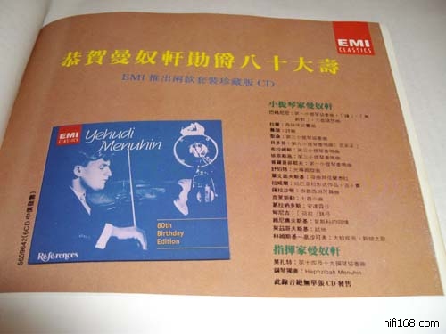 Menuhin兄妹的那张Mozart并无Reference的logo,应该不算老参考的碟。此碟是附在Menuhin大盒子的赠碟,据称绝并无单张单独出售,见下图(摄自某音响杂志早年某期的广告页)。