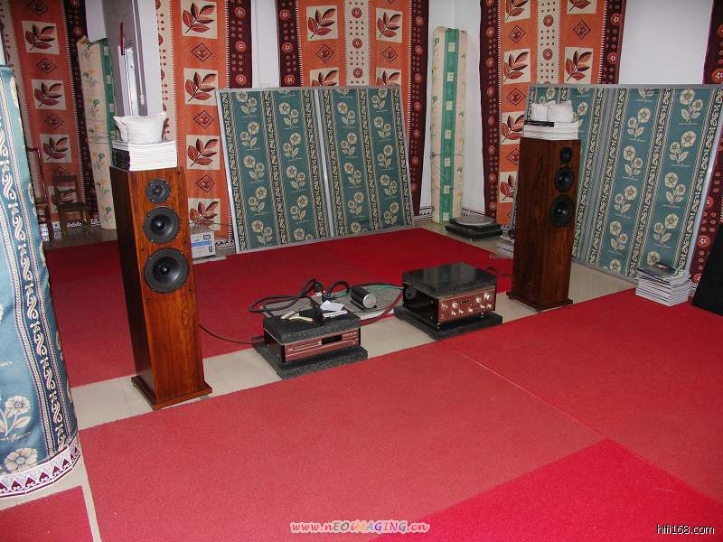 当场有人就问了:这小小的扬声器单元怎么也会出这样厚实饱满的声音?环境吸音那么多了,怎么也会出这样厚实饱满的声音?呵呵!!问题还真不少…………