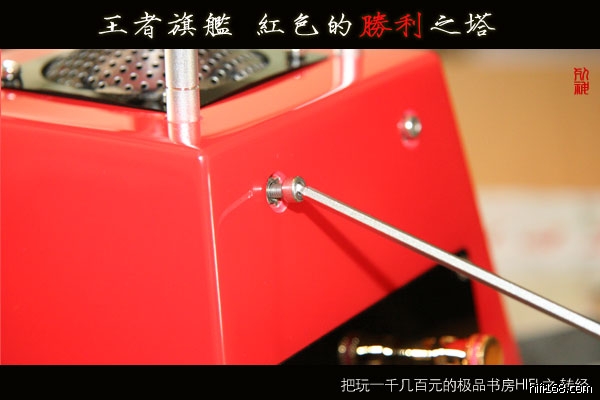 底部是三个锥形钉脚,之前琴谱的音箱都是贴胶片的,这次使用可玩性极高的锥形钉脚,应该是按放置面接触得越少越好的原理来做。可以在钉脚下垫上不同的物质来调教声音,我尝试过,直接用钉脚防治的话,声音会过尖,且容易划花木桌面,本来以为琴谱会在说明书的那个袋子上会附送6片橡胶垫脚……嗯~~可惜没有,真的有点失望。只能够自己再找一下!! 也希望琴谱厂商能够更加人性化,给我们配一配。