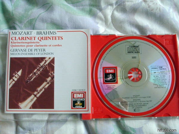 6,佩耶,梅洛斯合唱团,莫扎特和勃拉姆斯的单簧管五重奏(莫扎特和勃拉姆斯唯一的一首单簧管五重奏),EMI西德小天使,STUDIO系列,银圈SONOPRESS压片,品相完美,150.