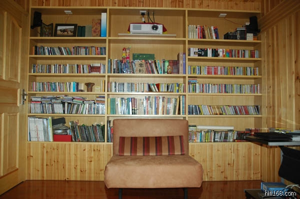 很8错。木装饰很有特色。碟柜显然原来是书柜,用来装碟颇浪费空间。