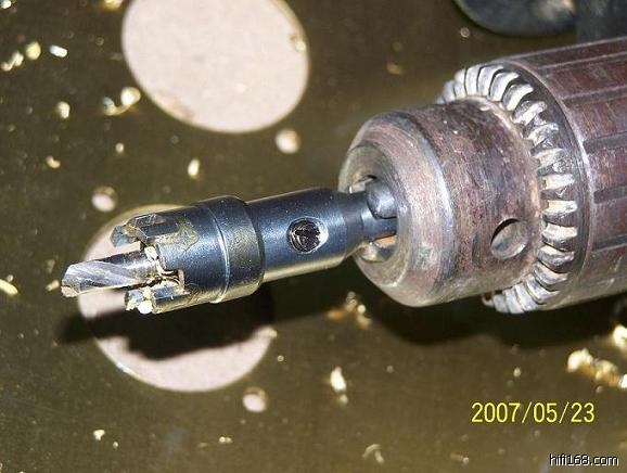 在业余条件下机器台板开方孔也很简单,先用手电钻沿方孔线钻一排密集的小孔,然后用宰(这个字我忘了,只好用同音字代,好像是这样写吧----“錾”)子凿穿,再用大平板锉刀锉平即可,但成型要漂亮,这和机械钳工基本功有关,所以要多动手。