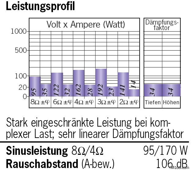 这是功放输出功率测试图,负载从8欧到2欧,8欧时95W,边上的35瓦代表什么含义?