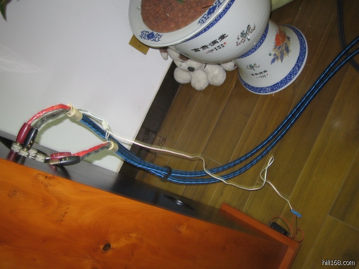 出美国线圣(AQ)勃朗峰喇叭线 从香港购入 香港师傅用散线重料制作 一边两条2.5米作双线分音 双边加起来共有十米 已装有电池