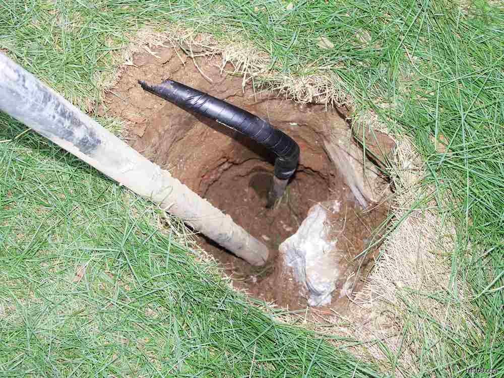 朋友地线地极用的是一根直径35mm,长大约1m的铜棒,(呵呵!花费不小哦)并以6平方铜线与铜棒连接引出。铜棒埋入地下约1.8m深,地下土壤也很潮湿,很是认真卖力,照片上看到,6平方铜线还用绝缘管套上,加绝缘胶布密封,以防止腐蚀。