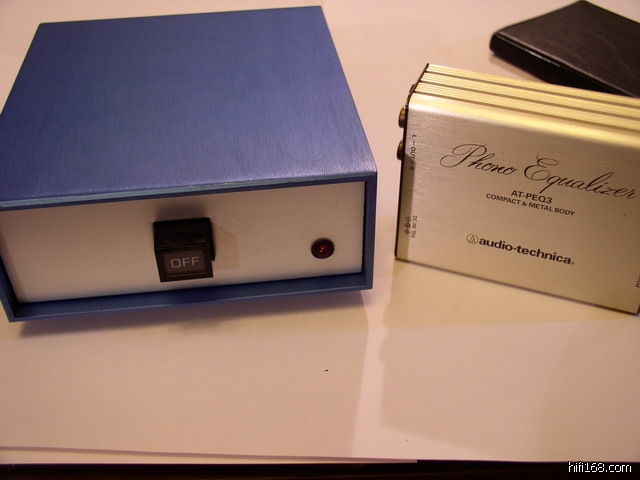 出铁三角MM唱放,外置电源供电,金属拉丝外壳;美国MC升压器,电池供电,内置两节9V积层电池,