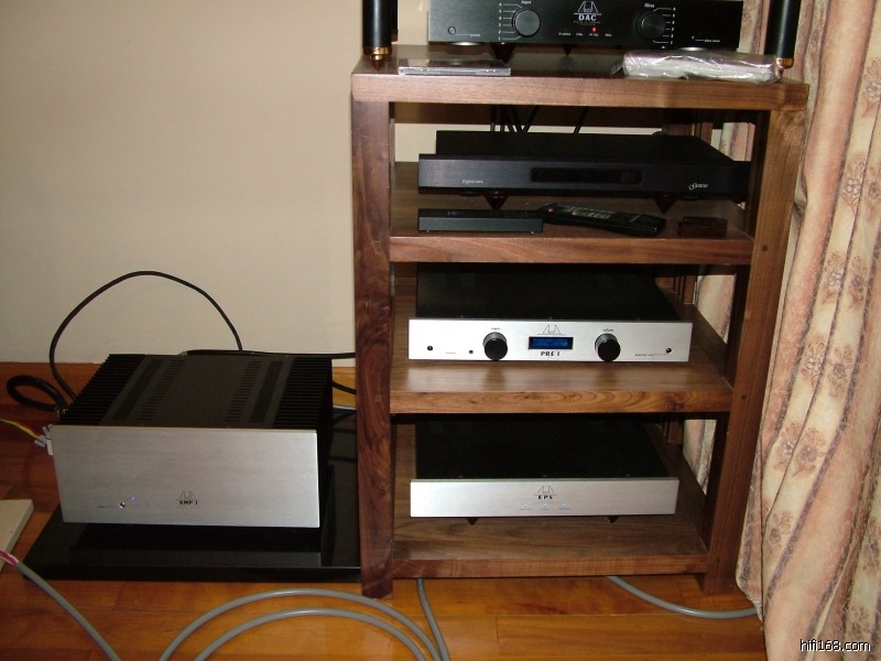 那个墙角正是驻波严重的地方,会对器材产生有害的振动,建议把喇叭线拉长,器材架放置在皇帝位附近的手边,也不要放在两音箱中间,对中间舞台结像有影响。如果实在喇叭线不够长,建议器材架换成多个单层或双层器材架,放在中间靠后的位置,这样也不会太影响整个中心舞台感的呈现。
