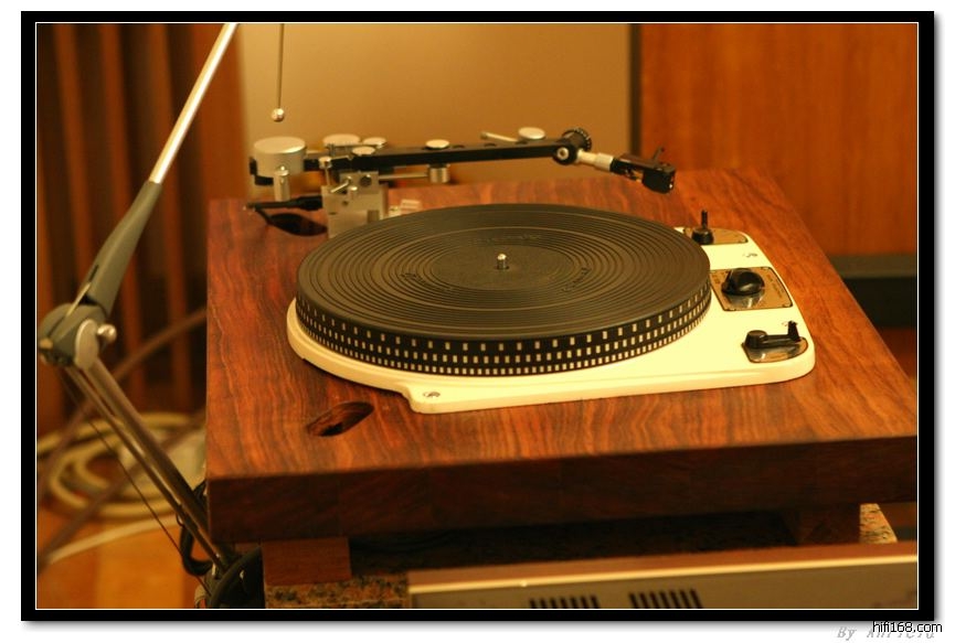 再来说LP系统,看见此台GARRAD 301,故人相见,俺是五味俱呈啊,X兄把原来的三夹板为主材的底盘来个了彻底改造,现用红木实木底座,另外两边分布了三个唱臂座,估计9~12寸的唱臂都没问题了吧,X兄现在用的是DYNAVICTOR臂和头(这品牌俺不熟,不知有无拼错),看到301在X兄处过上了好日子,俺也就宽心了:)