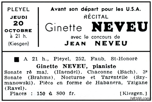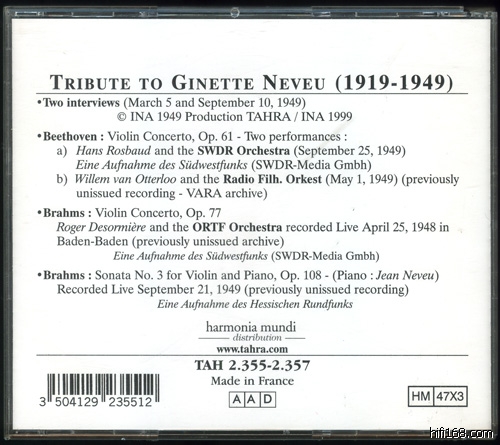 Tahra这套3CD的现场录音非常珍贵,还包括了Neveu最后离开巴黎前的采访录音,让人黯然神伤。Tahra有许多珍贵的录音,不过音质水平常常很糟糕,这套Neveu也只是马马虎虎而已。