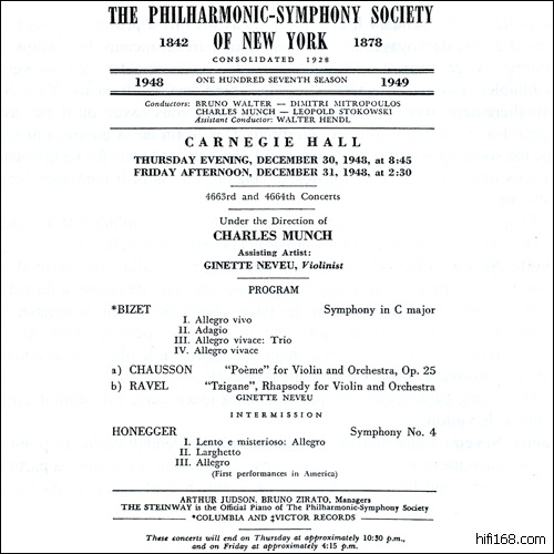 1948年12月30(31?)日跟Charles Munch的Chausson“音诗”和Ravel Tzigane;