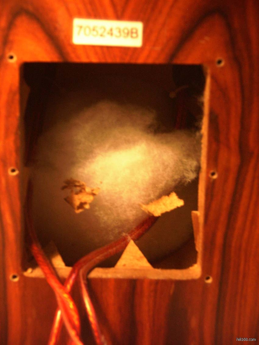 沥青板上也没有覆盖厚厚的吸音棉,反而有好多木屑充斥着箱体各个角落!吸音棉是一整卷比较随意地裹卷在箱体内空间的⋯⋯如此状况,让我不由地产生好多联想:这是改良版吗,不会是超值版吧,但是酸枝木皮告诉我,应该是正经的改良版。难道是烧友diy的作品,也不会,商家是信誉颇高的老字号,我也是他的老主顾;只剩下一个最大的可能:出厂时就是这样的!!!