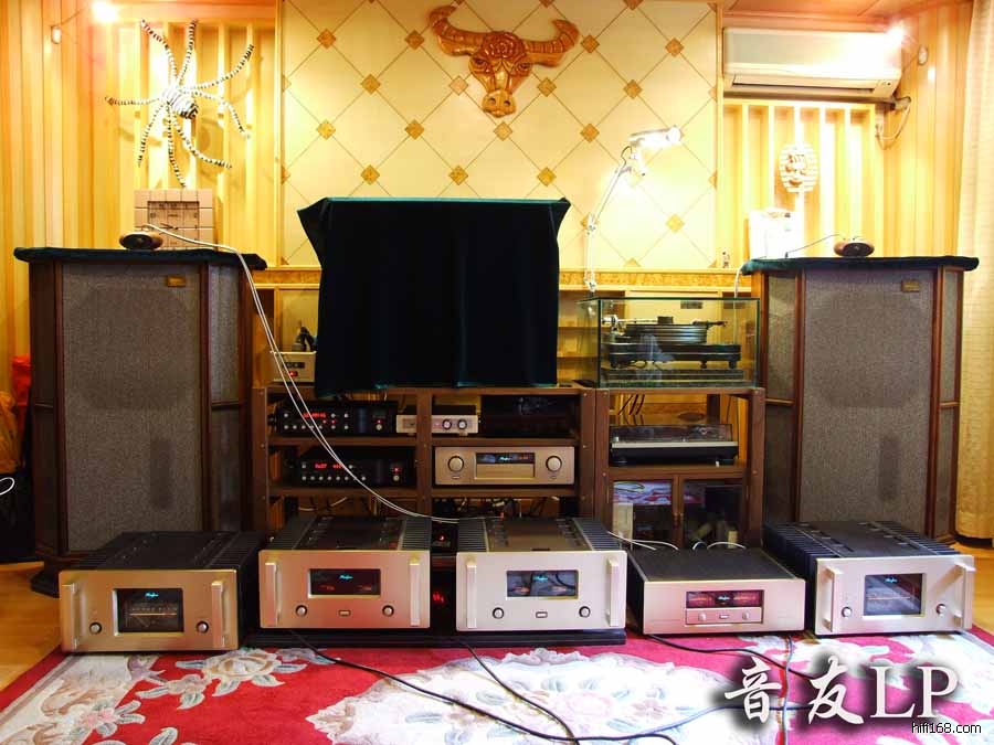 这是我朋友器材要升级后级前的比较,原有声源是马克3637分体CD机,金嗓子前级C29,一台金嗓子A-20后级推天朗超高音和天朗大将军高中音,另一台金嗓子A-50后级推天朗大将军低音.这样分开来推人声高贵细腻,高频延伸好,低频控制力加强.后来又试加多一台金嗓子A-50后级,用A-20单独推超高音、一台A-50推大将军的高中音,另一台A-50单独推大将军的低音;三台后级分别推人声除了有高贵感细节多外还带有光泽感,音场立体感好,低频下潜细腻,动态强劲有些力气了.加多一台A50后级让人听后是中毒了.哈哈.