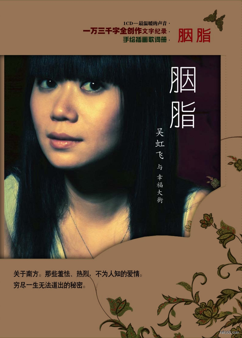 3月29日晚8:30,由星外星唱片与微薄之盐主办的吴虹飞和幸福大街乐队最新专辑《胭脂》首唱会将在星光现场举行。在去年的一场和黄健翔的“战争”硝烟散去之后,这个在音乐上坚持了8年的女人,到底是怎样的呢?再多的想法不如惊鸿一瞥。