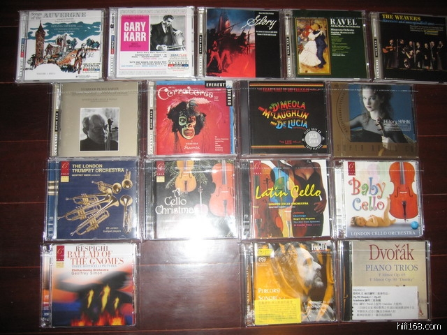 今天最新拿到的七张CLASSIC公司的HDAD和DAD还有五张CALA公司的SACD(即以前天乐公司代理的伦敦大、中、小提琴),还有两张SONY的SACD,还是以前的话,HDAD的声音实在是太棒了!接下来准备把其他的CLASSIC公司出的爵士的HDAD和流行的DAD都买回来,现在已有几张断货中,现已在订货,不久应该能拿到。看样子过不了多久这些可能又会绝版了。