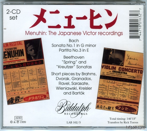 在繁重的演出日程(当时交通也不能跟现在比)中,Menuhin居然还能有空录音,真是奇迹。但是日本Victor的录音工业还不发达,而且跟美国总公司关于战时版税问题闹得很僵(总公司当然想算旧帐啦),不过日本Victor透过主办的朝日新闻社斡旋,Menuhin答应进行录音,他本人似乎对录音比观光有更大兴趣。
