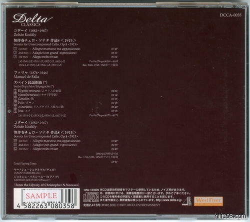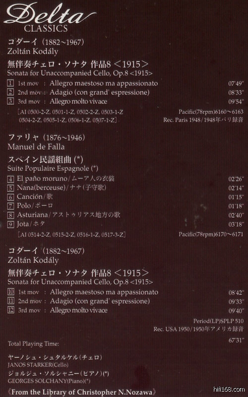 Delta:Janos Starker 一、二回Kodaly无伴奏录音
