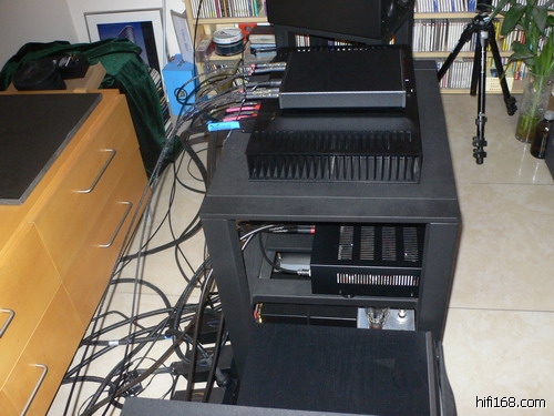 特别值得注意的,混混兄使用了大量的音响附件。如向美国SA定做的音箱架和器材架,德国FE的器材钉,卡达斯的木垫,CD吸震器等等,