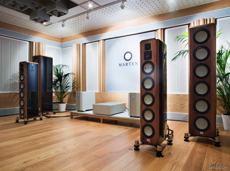 与比利时Venture、美国Avalon和荷兰Kharma的高端产品一样,Coltrane Supreme与Coltrane都采用了Accuton的钻石高音。而于2006年美国CES大展上首次亮相的Marten Design旗舰音箱Coltrane Supreme采用了高/中音音箱与低音音箱分体的设计,而且它是全世界第一款采用了Accuton的5公分口径的钻石中音单元的音箱。Coltrane Supreme的高/中音音箱采用封闭式箱体,箱体侧板是用25毫米厚的碳纤维复合材料制成,而前障板、背板、顶板和底板则是用60毫米厚的实木制成。高/中音音箱共安装了一只3/4"钻石高音单元(型号是D²20-6)、一只2"钻石中音单元(负责中频上段、型号是D²50-8)、一只7"陶瓷中音单元(负责中频下段)和四只7"陶瓷低音单元(负责低频上段);分频器采用二阶和一阶设计,分频点为330、1200和8000Hz。高/中音音箱的频响范围是90-100000Hz±1.5dB,承受持续功率300 W、峰值功率1500W;灵敏度93dB/W/m;阻抗为4欧姆(最小3.6欧姆)。Coltrane Supreme的低音音箱则装备了六只9英寸口径的陶瓷振膜低音单元以及内置的2000瓦功率放大器;分频器采用四阶设计,分频点为110 Hz,并附带有数字式房间声学特性校正功能;其频响范围是15-100Hz(-3dB)。如此不惜血本的用料和“烧昏头”的设计所付出的代价当然是常人难以想象的,一对Coltrane Supreme的售价竟高达25万美元。