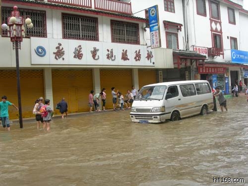 西街口的外国人在洪水中