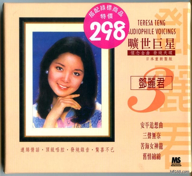录音水平就不用多说了,如果说1980年同年录音的<势不两立>入选发烧碟,那么这张没理由不入选,只是早期一些发烧友或音响杂志编辑大都来自香港,自然粤语的<势不两立>或君其他国语歌会占先,其实人声部分的录音甚至比<势不两立>更通透更甜美,不会输给她最著名的发烧专辑《淡淡幽情》!
