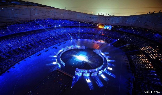 5。上百的机位都在哪?场内三层看台各个角度肯定都有云台定镜,中央球场也有定镜/斯坦尼康若干,天空中的航拍二到三个,肩扛机散落场内不定。应该说这些已经不错,已经可以出很棒的效果了,不过还是有提高的空间。缺少的:a.气球或飞艇的长时间航拍;b.绕场的或沿跑到直线的推轨机位;c.斯坦尼康的运动不足,缺少动态的美感;d.场外的各角度大全景机位;e.类似06德国世界杯安联球场的由外入内的高空索道机位或绕鸟巢顶部的推轨机位