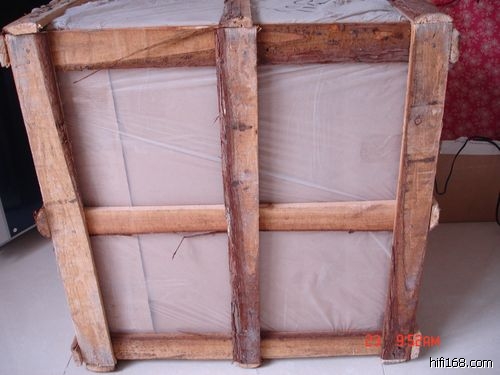打了木箱包装, 实际上当我搬进家门的时候就知道木箱是非常必要的,CD规格书上说包装毛重66,CD净重54 ,而旁边的530功放不过净重50斤。搬得我踉踉跄跄才放上器材架。