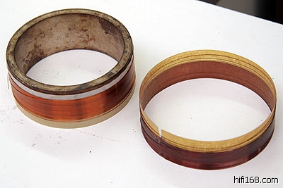 单体拆开之后,我们可以发现音圈尺寸特别大,Keith说,甚至有些15吋低音单体的音圈也不过这么大。大型的音圈以手工绕线,整个音圈由音圈筒和绕线组成,由于音圈负责快速的活塞运动,以推动振膜发声,所以要具备低质量与高刚性,同时还要有良好的散热特性。