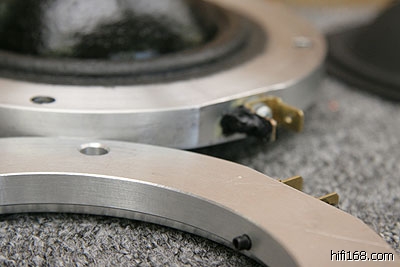 固定音圈极线的端子,设计特殊的孔洞,避免固定不良产生谐振,也是PMC中音单体的特色。