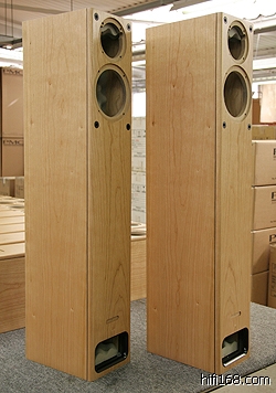 PMC厂房内并没有制作喇叭音箱的木工机具,推想应该是委外生产。没错,PMC的音箱都是 委托英国本地的高级家具制造厂代工,但Keith表示即使在英国,合乎PMC要求的协力厂商还是很少,这么多年来他们只找到一两家工厂能够符合标准,而且 请家具厂商制作难度很高的传输线式音箱,成本也非常高。Keith说:”不要看GB1的喇叭音箱造型典雅传统,制作好像很简单,但仔细注意喇叭周围的弧 线,原木花纹必须平整自然的延伸,都得靠协力厂商的真功夫。有些木皮加工不良,遇到折角弯曲的制作不平整时,可能就直接拿砂纸磨平,木纹就不会自然延续, 缺乏高级家具般的质地,但在PMC的标准里,这些都是不合格的制作工法。“