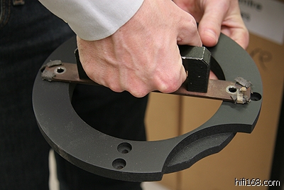 这款中音有多重?当场一问大家竟然都不知道,Keith猜10公斤,另一位同仁猜6公斤,可是大家都是用猜的。隔壁负责安装MB2的同仁自告奋勇过去秤重量,结果答案是8.5公斤,真不简单,一个75mm的中音单体重量,竟然几乎和尺寸大一倍的低音单体一样重。