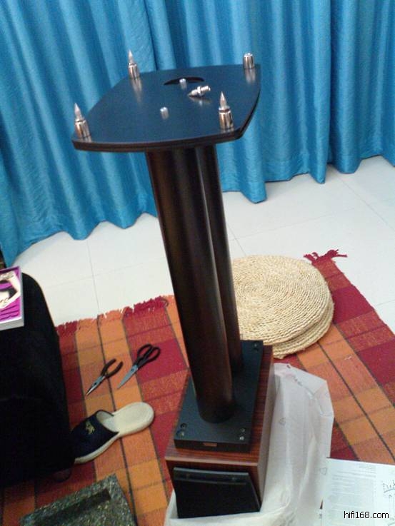 S1.4玫瑰红木色很漂亮,原装脚架的确是精典,份量超重,直接和箱体安装在一起,我看了半天才接功放开声啊,漂亮啊!
