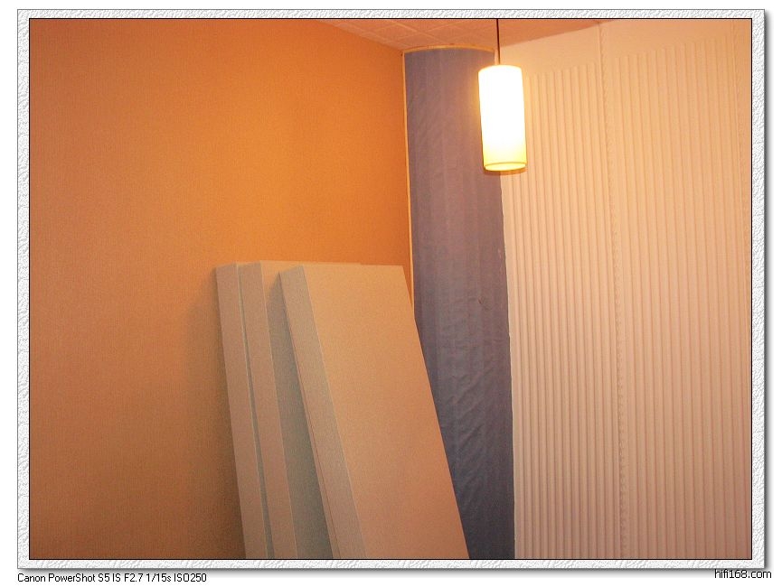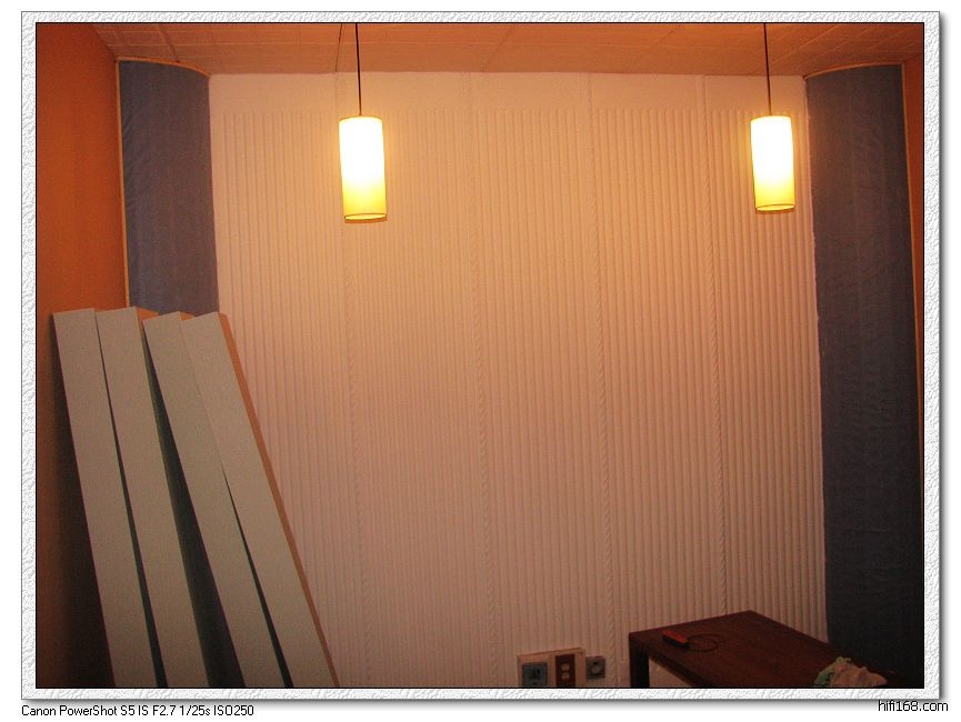 好了,做四块薄板共振板备用(独创),是移动的,目的是用来滤除环境里那些计算过针对的频段.也具有一定阻尼及吸收作用.安放于两则墙,可来回移动调校.里面放吸音材料,外包薄板,可开孔子.最后包布或墙纸.独立单块减少共振,放在家里美观大方,有其好处.