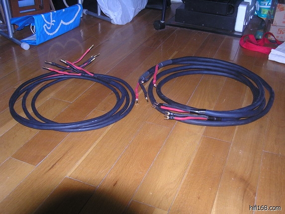 右边粗的是16条FPC铜的MIDNIGHT 3,左边略细的是高一档的12条FPC-6铜的FOREST.长度皆2米5都是原装线,除MIDNIGHT 3功放端为原装叉片外其它都改用CMC香焦插,价格1000元一对包快递大刀免谈.13162054900许先生