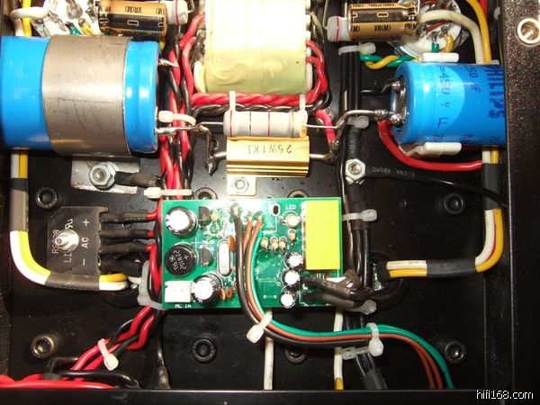 用这个机子听,动态、细节、声场都很不错,但是总觉得感染力还要多一点就好了!当然,我也知道,信噪比与感染力是一对矛盾!要提高信噪比就会削减感染力,这是不可避免的。谈到这一点就不得不谈到DIY的胆机与量产化胆机的很重要的不同,那就是“前期纯手工制作的胆机其电子管的阴极(灯丝)基本上都是采用交流供电方式,而后期的量产化胆机则基本上采用的是直流供电方式”。这是李鹏展在《视听技术》2006年第12期的文章《平衡在哪里?》之中早就谈到的现象