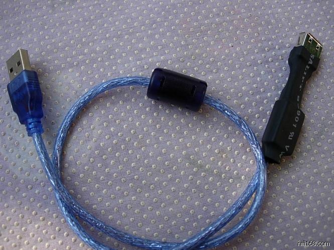 这条USB连接线的作用就是对电脑的电源进行处理,消除USB接口+5伏供电的杂波,让这个发射信号的U盘工作得更好,这个工作不做,后面的主机再摩声音也不能到位。