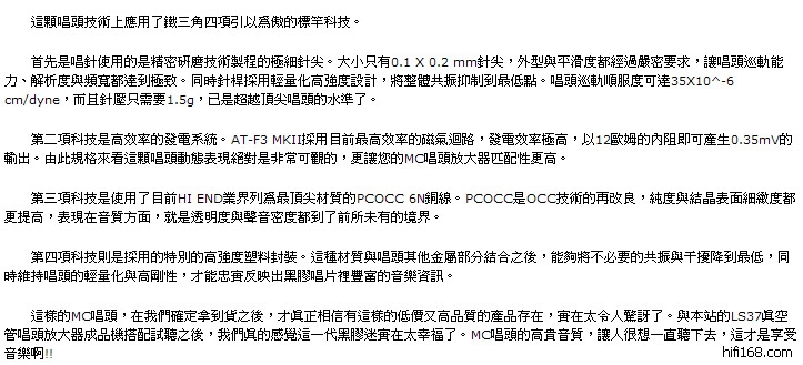 原帖由 松香味 于 2009-1-15 13:28:00 发表mylp兄既然用过AT-F3IIMC唱头,请多给建议哦。