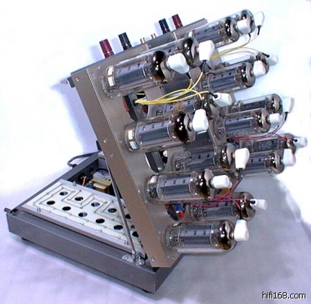给错资料你了,真抱歉;人老了记性就是不好!胆管是EL519/509/(6KG6/40KG6)的16支每声道,特制品。样子跟下面这部日本机差不多丑;只不过是更彻底的单声道化。