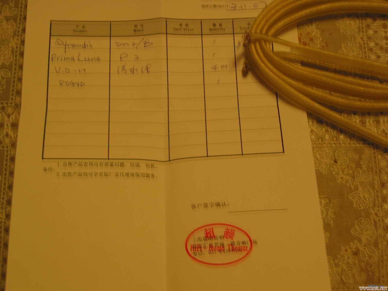 范登豪清水喇叭线07年3月购自上海超韵,行货,单边2米,无头,250包邮。