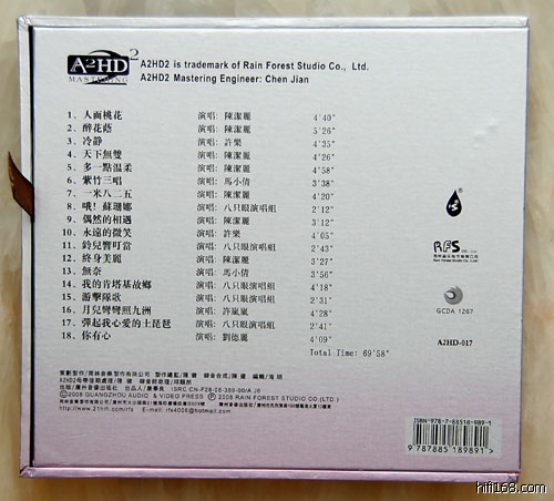 雨林不久前推出的A2HD格式唱片受到广大发烧友的好评,雨林没有固步自封,为探索更尽善尽美的效果,他们又研制出了A2HD 2唱片,这个A2HD 2是在原来A2HD的制作过程中添加了DXD(Digital eXtreme Definition)状态转换、处理,经过我的试听,发现效果的确有明显进步。