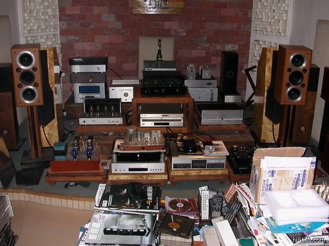 由于客观环境因素影响,只能在自己房间里小资一把,于是就有了建立一套桌面HIFI的构想。放在桌面上近场聆听,并不需要太大声压,小音箱和小功率功放就足够了,而且这种组合玩好了出来的声音比大功率功放配大音箱来得更细腻更精致。根据这一构想,在网上搜索了大量资料,最后选择了台湾38C的高灵敏度书架箱和拓品的TA2024数字功放。由于之前入手了老浦东的波霸,听过后对老浦东的校声比较认同,符合本人的口味,加上老浦东一直对数字功放研究得比较多,对如何玩好数字功放有自己的一套理念,所以就产生了请老浦东摩改这台数字功放的念头,还好,老浦东很爽快一口答应了,还承诺不满意不收摩机费,而且效率奇高,一天左右就已经把功放摩好并送到我手上。由于订购的音箱还未到位,为了检验一下这台好象玩具一样小巧的东东,立马就约了一位经销音响的朋友,到他的听音室去试音,他那里音箱众多,还有胆机,刚好可以比较一下这台传说是数字功放中的300B究竟如何。
