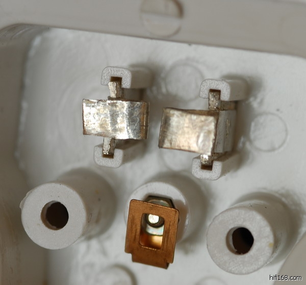 打开15元一只的转换插座,发现其结构比较简单。于是萌生了换掉接插件的念头!用银子,银的导电性最好。