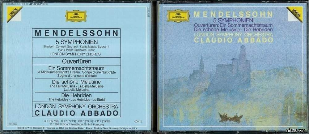 马勒,交响曲1号。这张CD是DG公司1991年的出品,编号为4317692。当时阿巴多执掌柏林时间不是太长。不知为何,阿巴多的马勒,都是现场录音,这张也不例外,今后介绍后面的8部交响曲,无一例外,全部都是现场录音,可能是柏林爱乐的演出太多的缘故,没有时间去花长时间的排练,所以都是以现场录音来出碟,但这些都是俺的个人推测,事实与此是否相一致就不得而知了,哈哈!!讲回这个马1。基本可以用几句话来形容:曲目本身、乐团演出、指挥都是很内敛的。第一乐章已经显露出深藏不露的特点,柏林的幼细度令我咋舌,柏林的一贯的从容也在这个乐章乃至整个曲目表现无遗;阿巴多的掌控力是一流的,每一个细节都令俺刻骨铭心。其实第一、二、三乐章都是先抑后扬,到最后2分钟左右就开始出现段落的高潮,令聆听者大呼过瘾;第四乐章一开始就出现高潮,到中段稍有收敛,最后又以一个高潮结点整个乐章,激赏啊!!