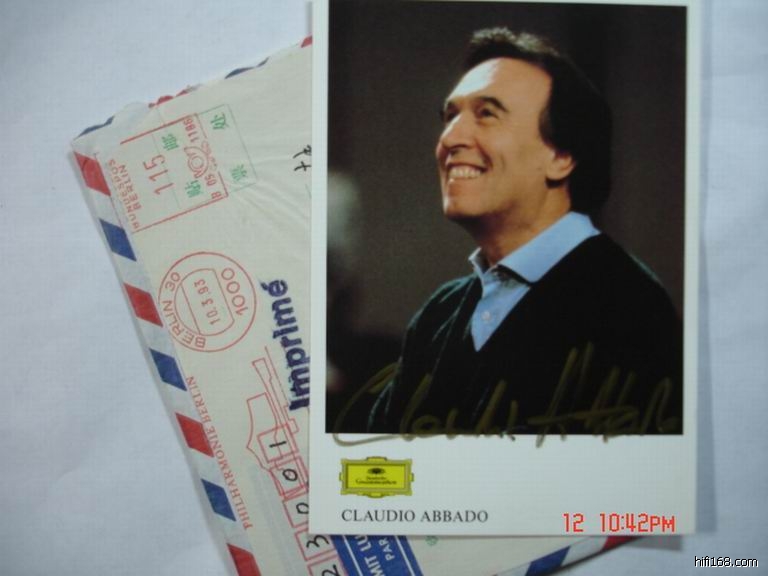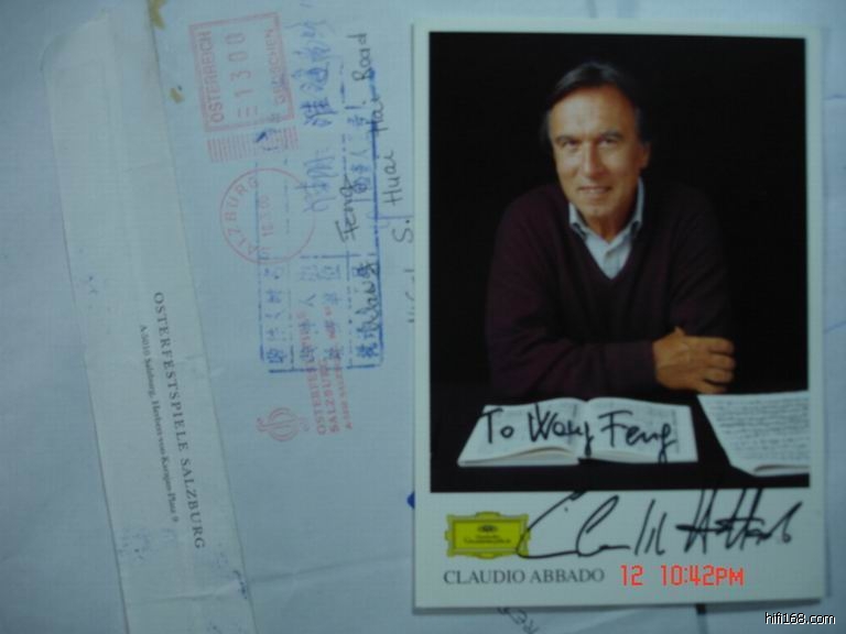 原帖由 wangfeng202 于 2009-5-6 10:11:00 发表 原帖由 myglacier 于 2009-5-6 10:05:00 发表每天都来膜拜一下楼主……敢问你得到的第一张签名照是哪位大师的 欢迎每日来膜拜音乐家!第一张是巴伦博伊姆,当时他还在巴黎交响乐团。本帖最上面的一张阿巴多是我收到的第二张照片,当时阿巴多还在伦敦交响乐团。呵呵。