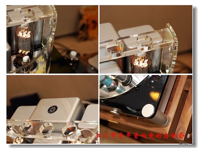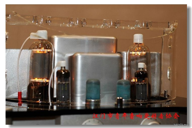 金大侠介绍他的ALI-8805合并式电子管功放,输出“电子管”选用了久经考验的“一柱擎天”805(FU-5),这是一只建国以来在广播系统普遍采用的一只音频放大专用管,其产品的技术性、完整性及可靠性,远胜于845、211,每声道在技术标内,能从容的输出50W以上的额定功率。